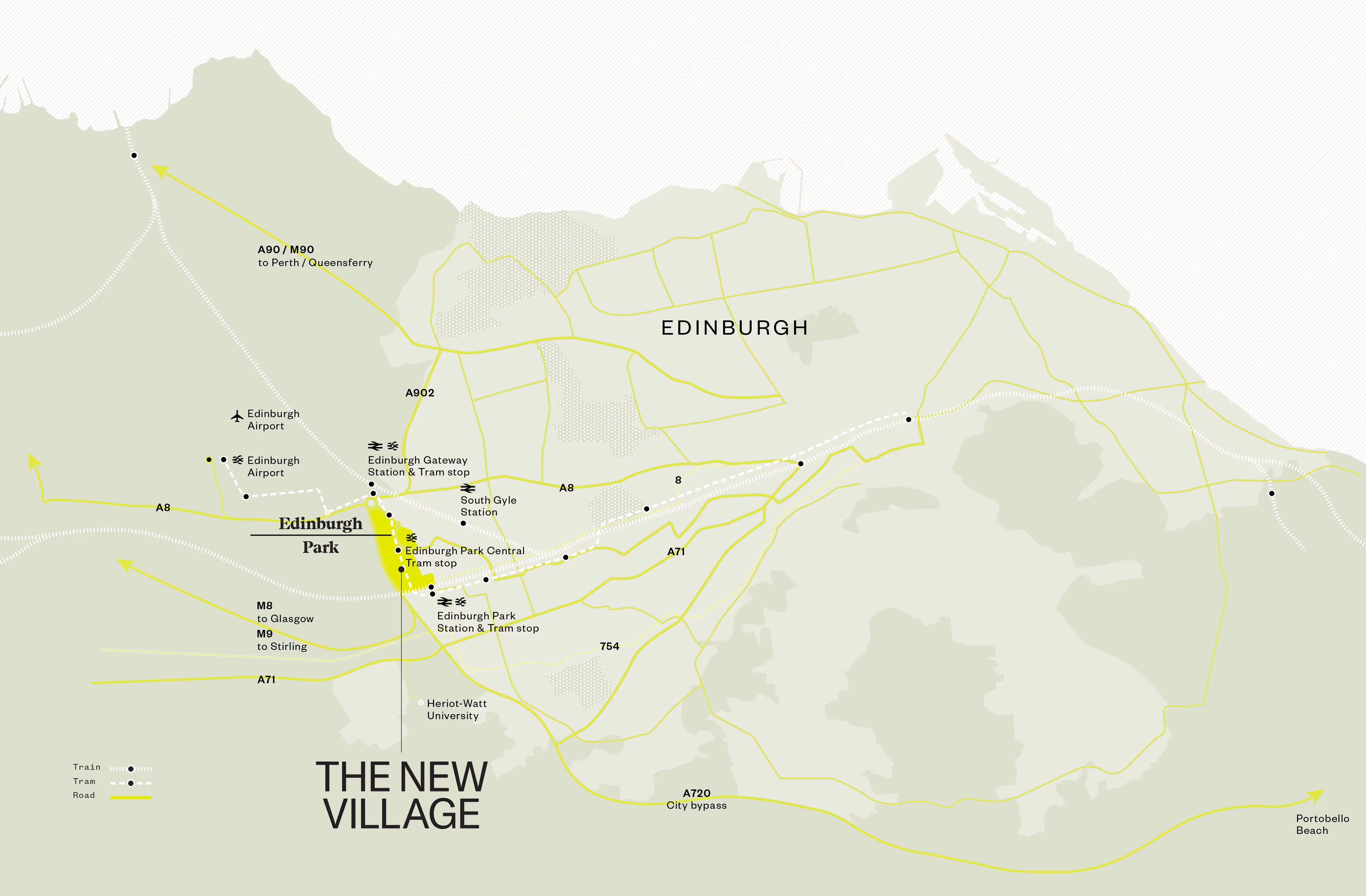 train and bus services that link the site to Edinburgh city centre and further afield.