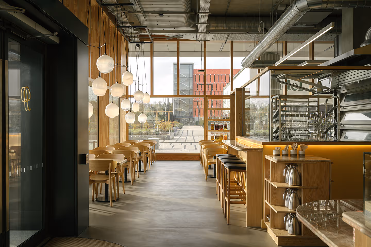 Start your day with coffee and pastries from Patina nearby. Cycle or take the tram to the city, or work from a café. Evenings bring padel, park walks, or drinks in the square. Life here is balanced — connected and calm.